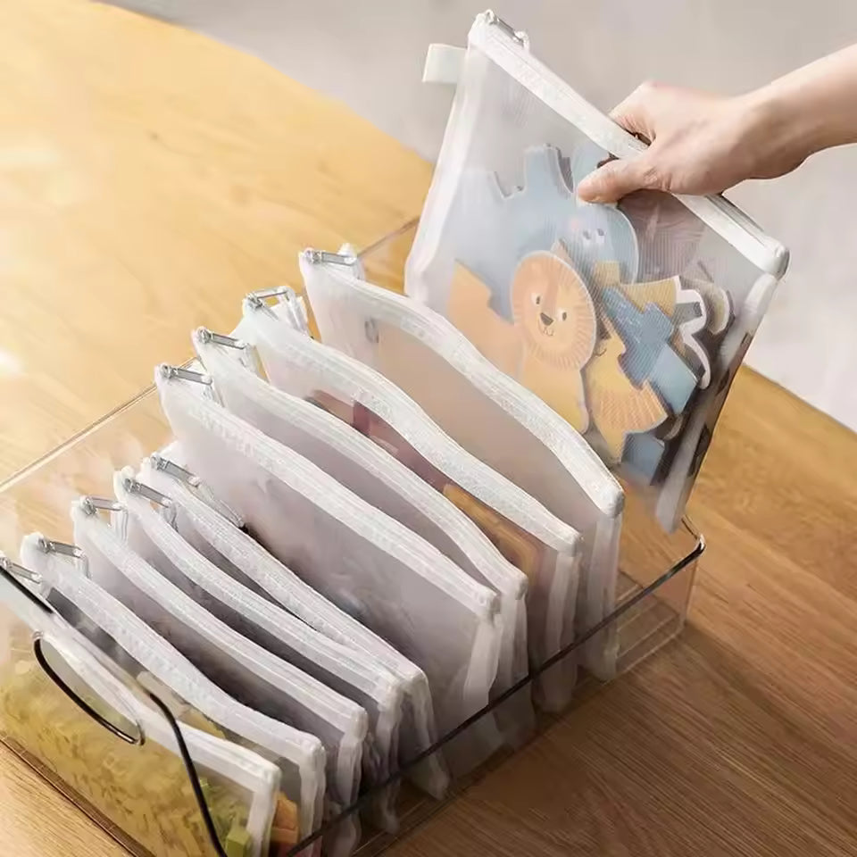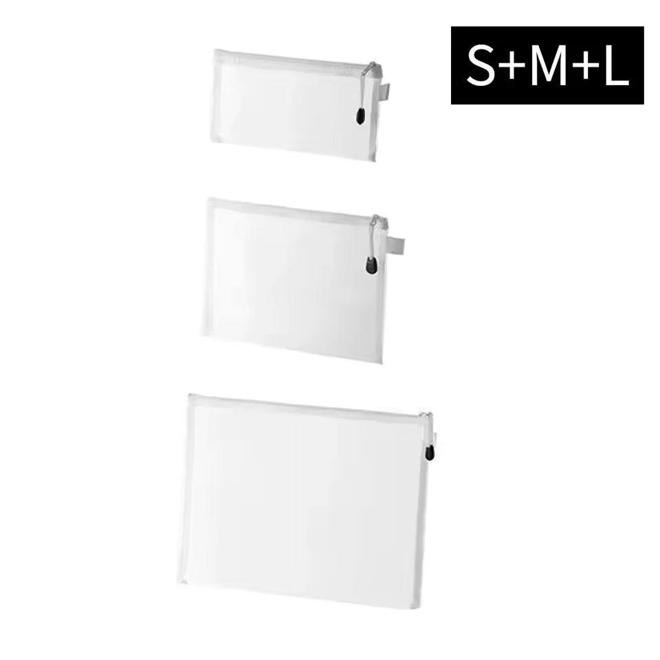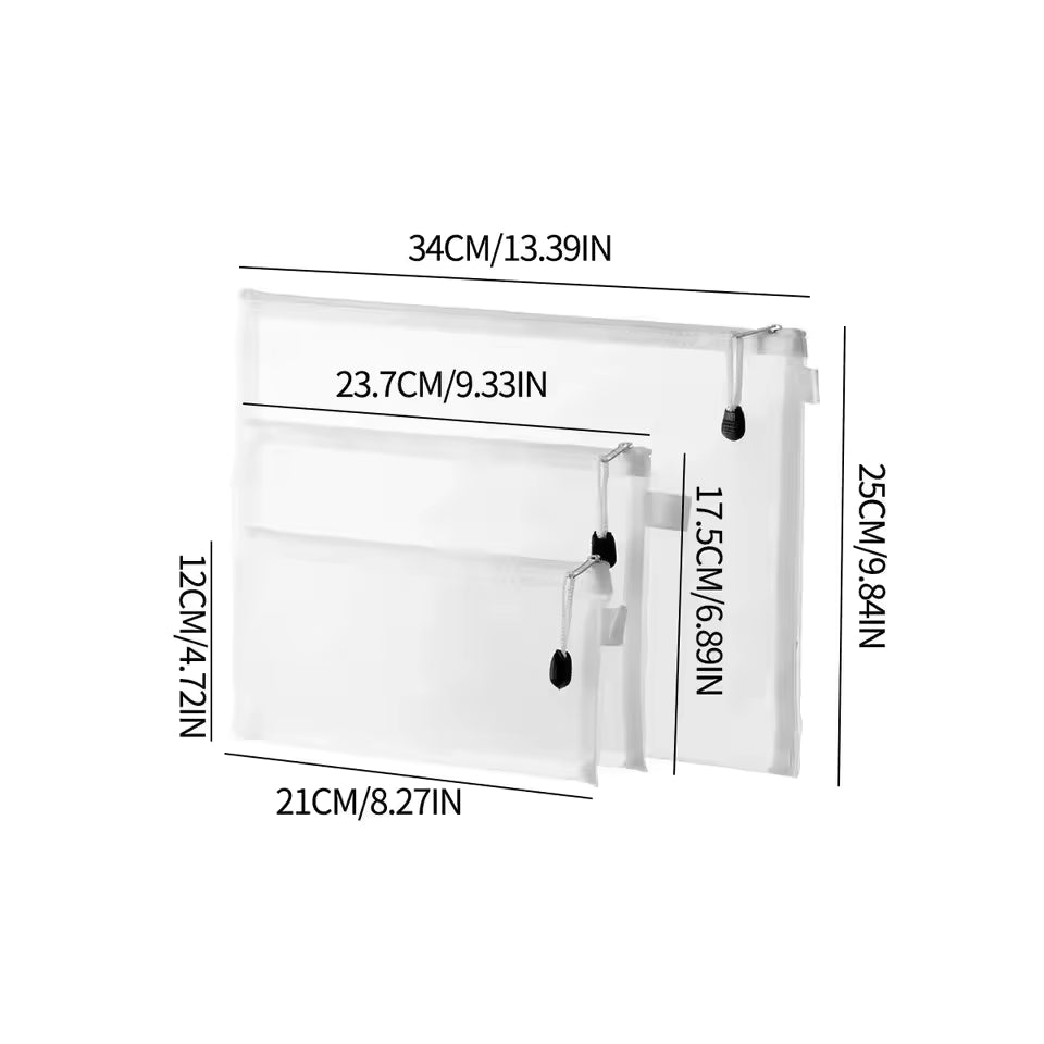 The 3PCS Mesh Zipper Pouch Set includes A4, A5, and A6 sized pouches, perfect for storing documents, stationery, makeup, or miscellaneous items. Made from durable, waterproof mesh material, these pouches keep contents visible, tidy, and protected, making them ideal for school, office, or travel.